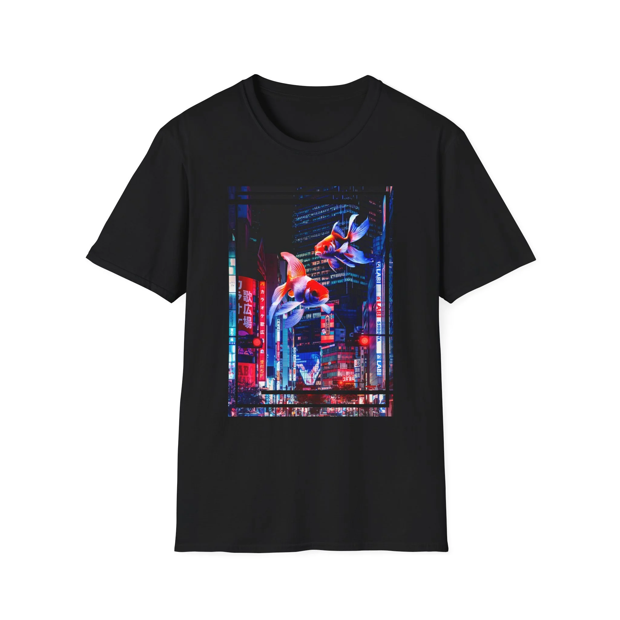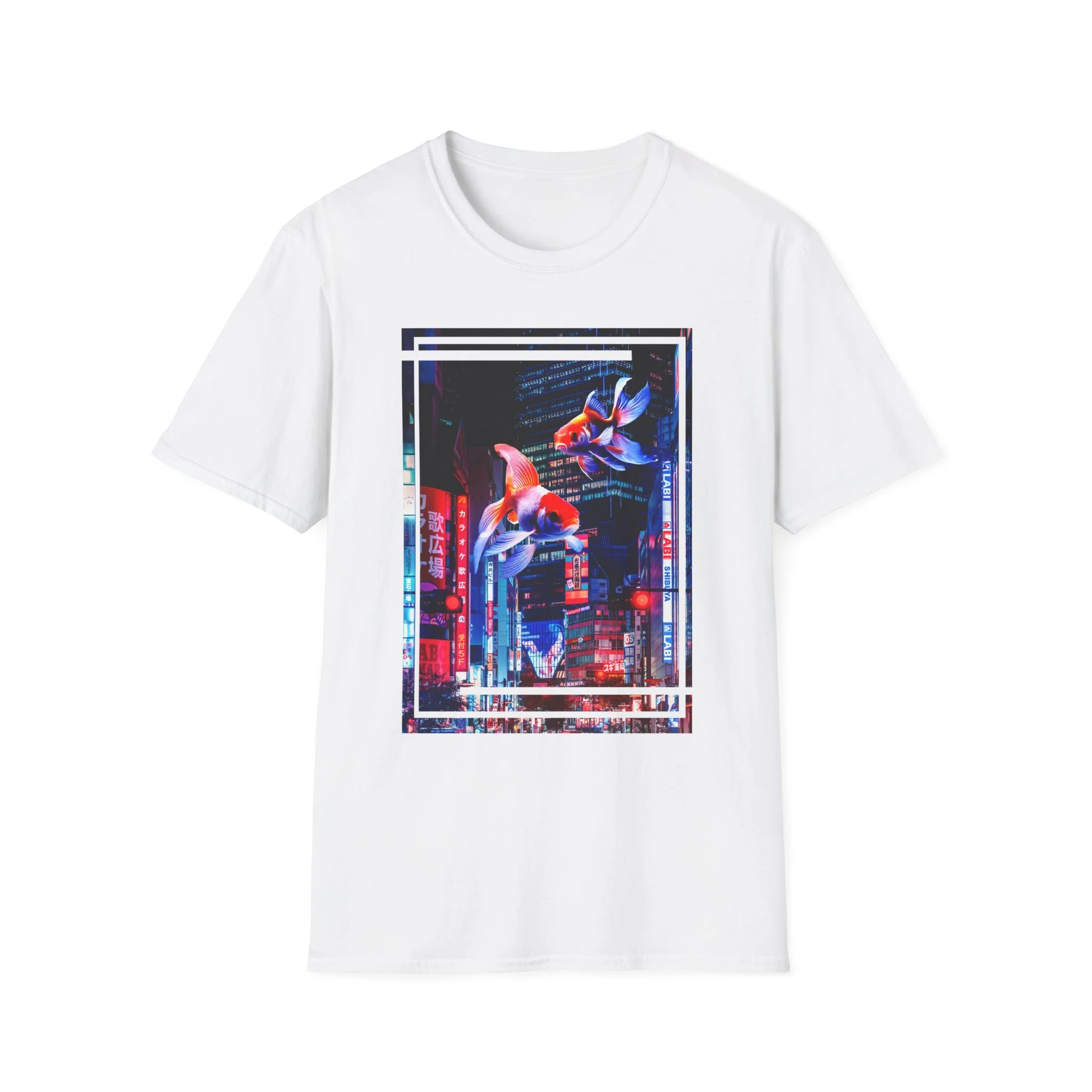 Japanese City Punk Koi Attack Unisex Softstyle T-Shirt - Vibrant Graphic Tee for Men and Women