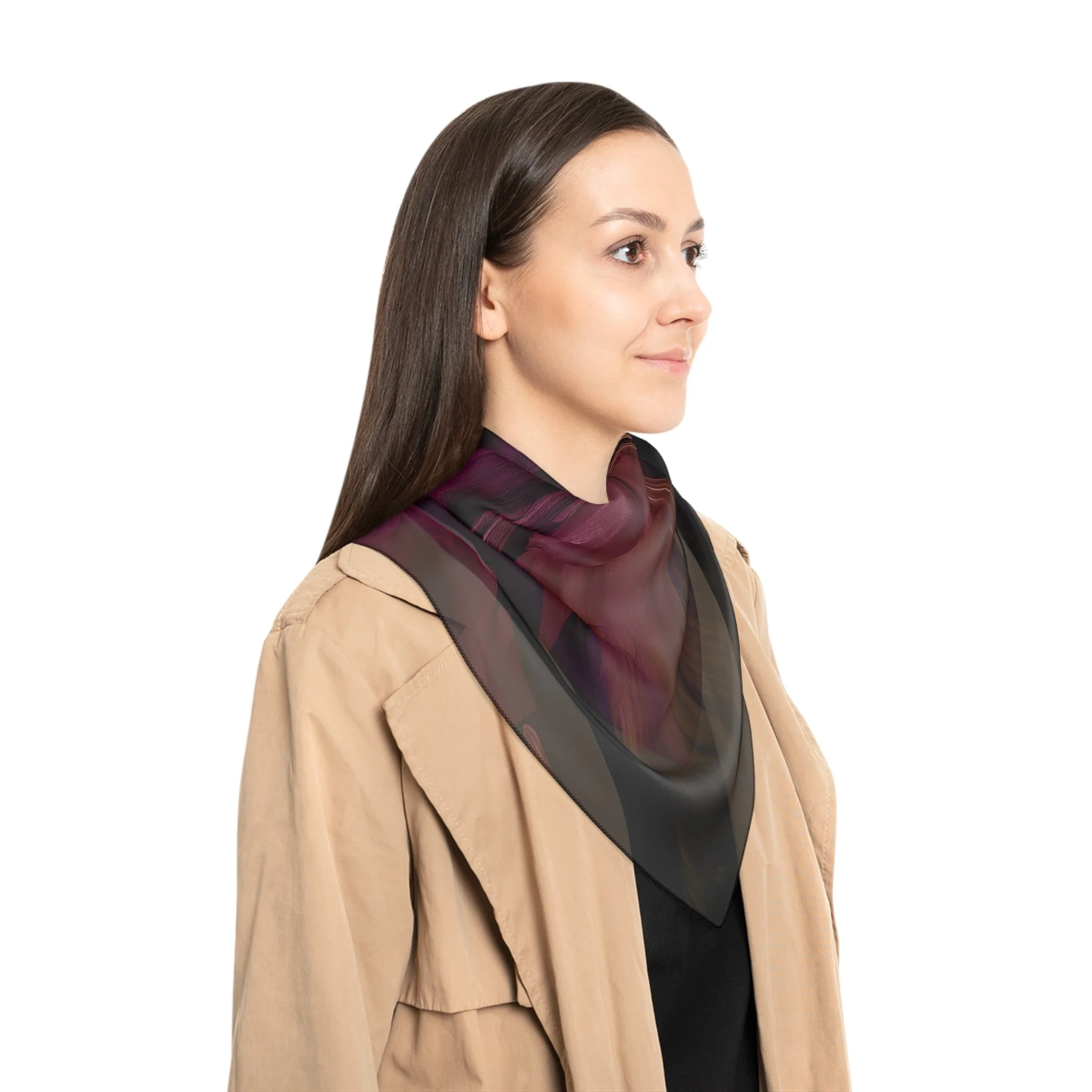 A whisper-light square scarf that drapes like velvet. Deep plum, maroon, and rose brushstrokes drift across the fabric, creating a subtle, liquid-motion pattern that reads luxe and low-key at once. This design channels the mystery of Dark Academia and the drama of a rich, Gothic Aesthetic.