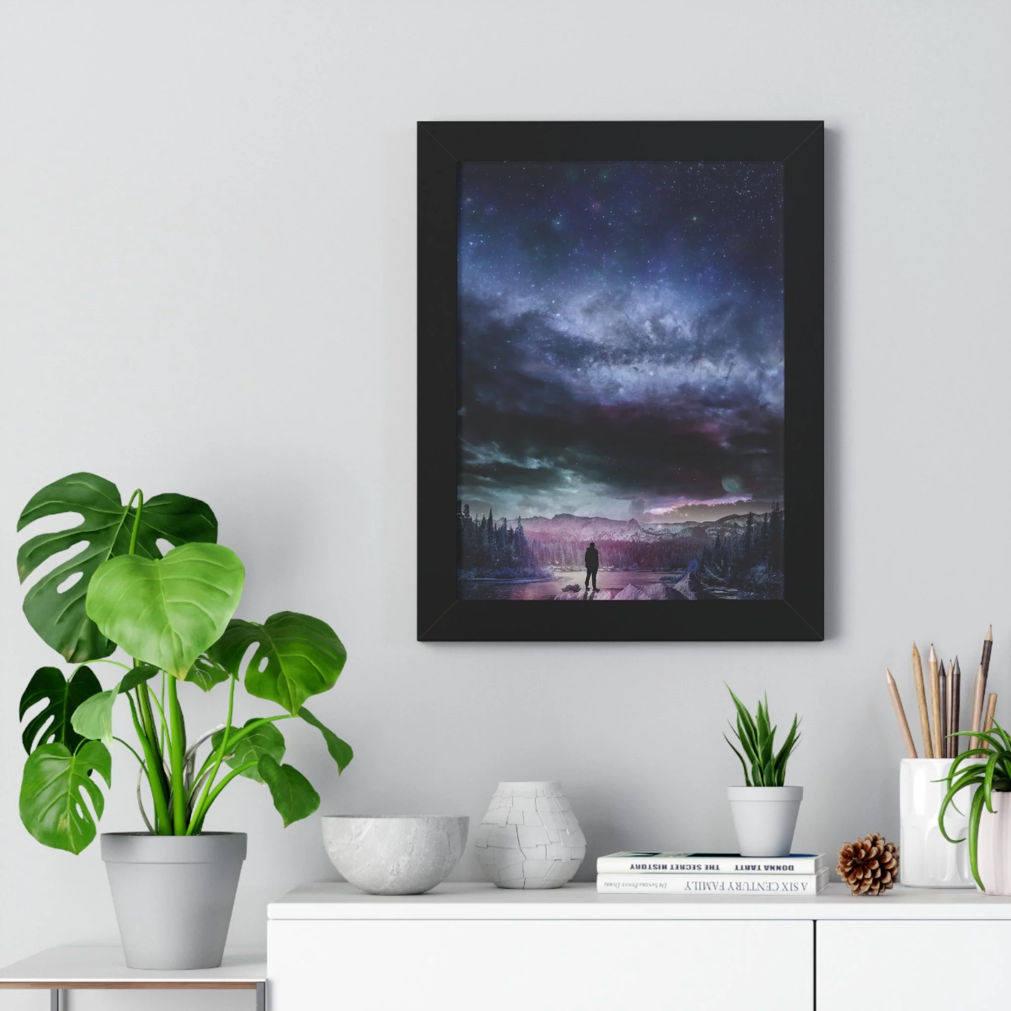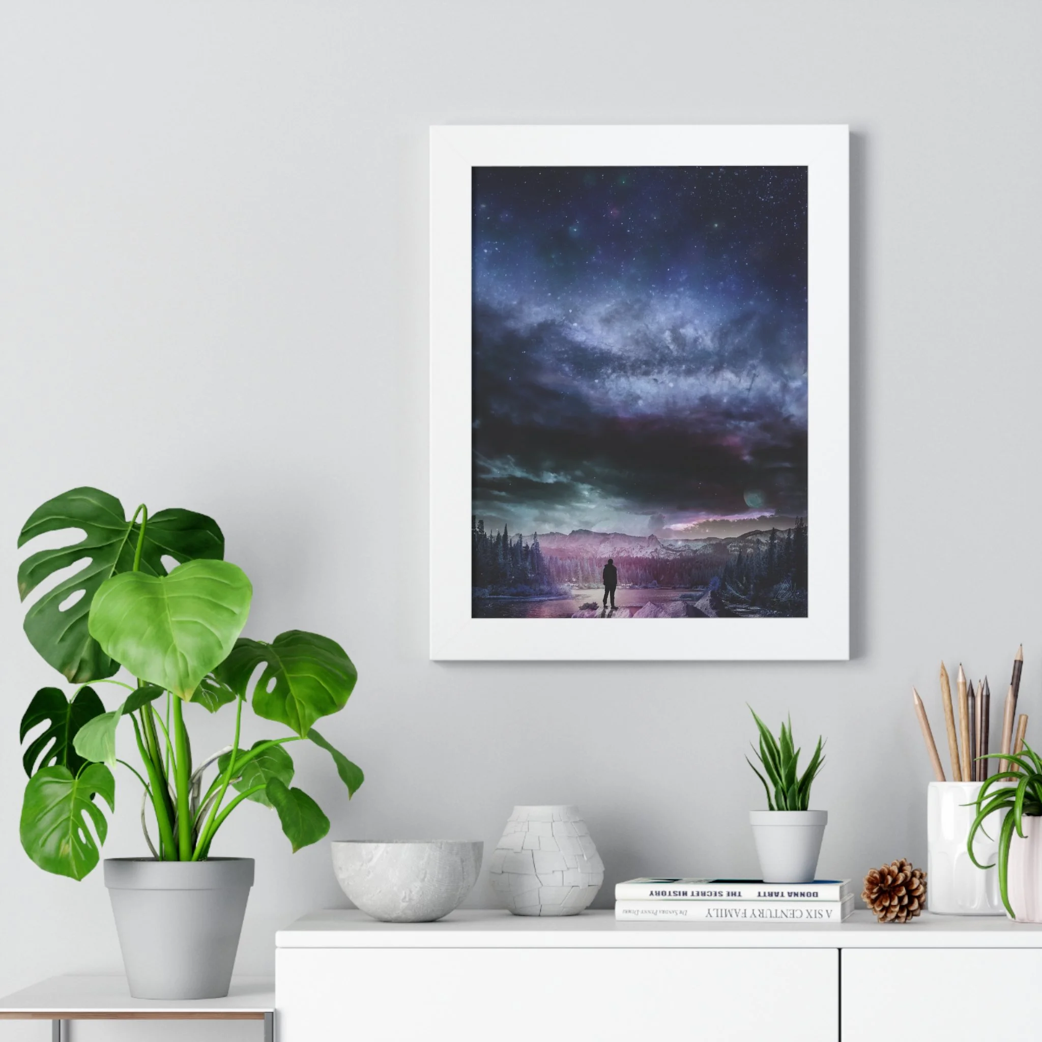 Space Landscape Framed Vertical Poster - Stunning Galaxy Art for Home Décor - Perfect Gift for Space Lovers